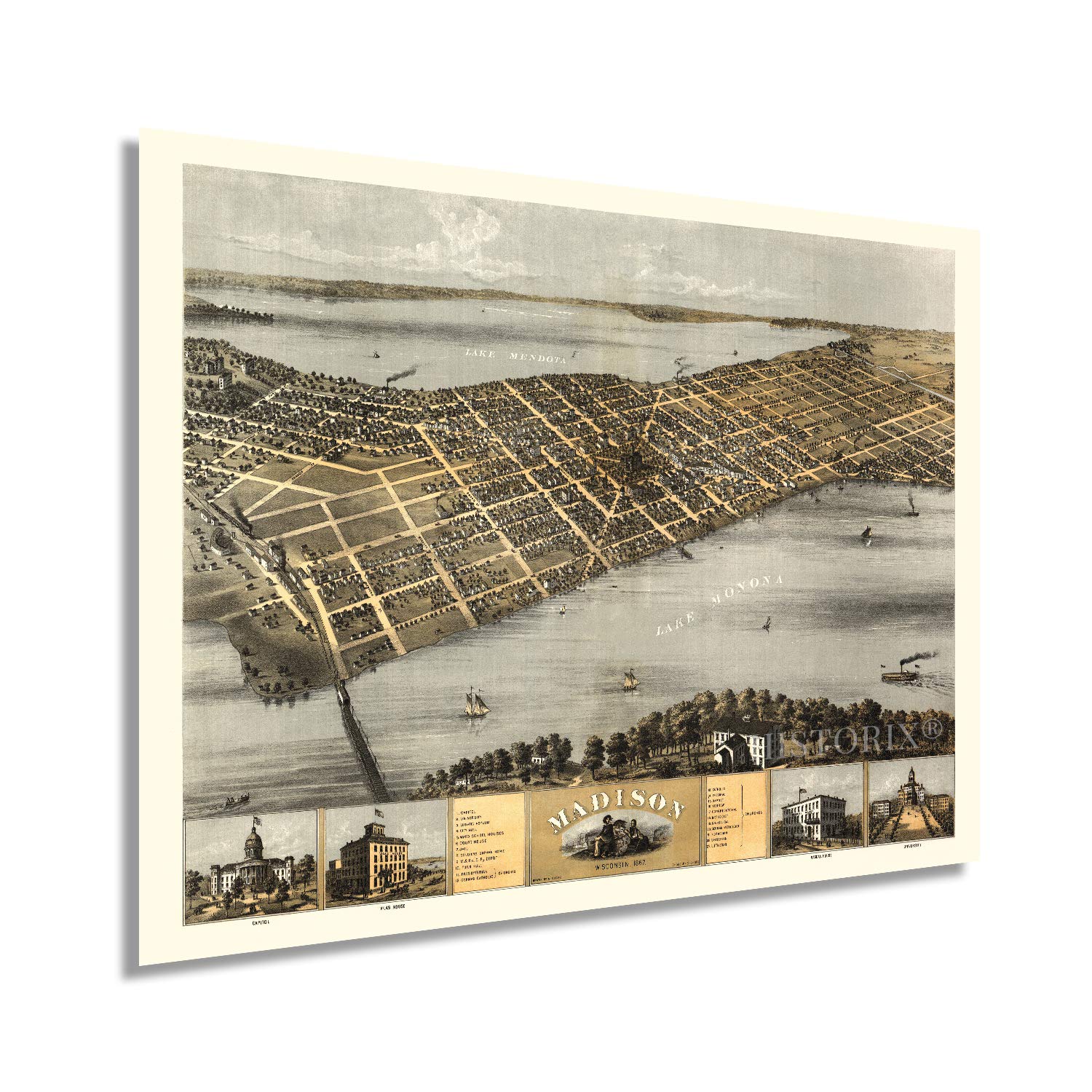 Amazon Com Historix Vintage 1867 Madison Wisconsin Map 18x24 Inch Vintage Map Of Madison Wisconsin Wall Art Old Madison Wisconsin Map Historic Madison Poster Bird S Eye View Of Madison